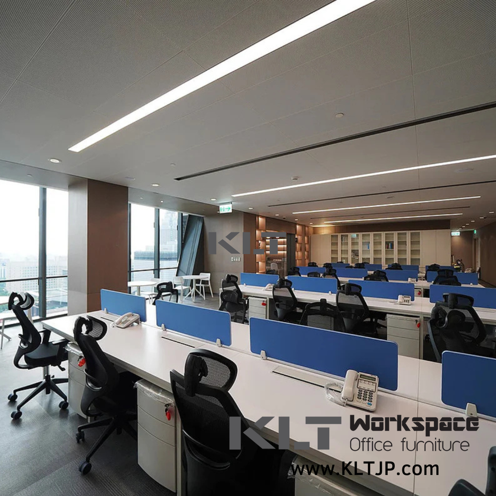 整體設計現代靈活,為商業辦公空間提供高效與舒適兼備的工作環境。多功能會議桌適合多用途會議與簡報;長型職員台結合桌上分隔板,提升私隱與整潔度;人體工學椅、網布椅及低背椅滿足不同工作需求,確保長時間使用的舒適;單人沙發椅與高腳椅則增添休閒與交流空間。可移動三桶櫃靈活方便,提升收納效率。整體風格專業俐落,展現信德中心現代化企業的高效與品味。