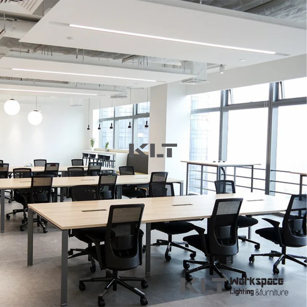 Rectangular Long Worktable with Cable Management, Ergonomic Chair,