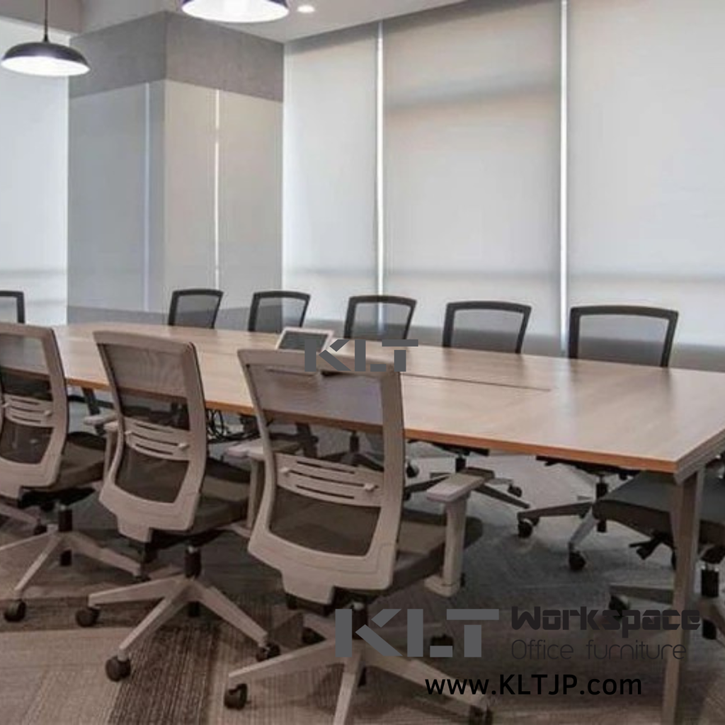 A clean and efficient office setup designed to enhance workflow, organization, and user comfort. The rectangular long worktable with built-in cable management keeps the workspace tidy and optimized for team collaboration. The conference table, also equipped with cable management features, supports professional meetings and digital connectivity. Desktop partitions help maintain privacy and focus, while mobile three-bin cabinets offer flexible and convenient storage. Low back staff chairs provide comfortable and supportive seating suitable for daily office tasks. The overall environment is practical, modern, and well-suited for corporate operations.