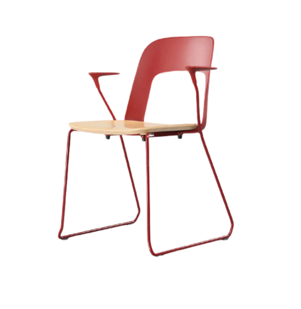 The chair is designed with long-term comfort in mind, featuring optional cushioned pads or PP seats to provide reliable support. Wooden armrests add a natural touch of elegance, while stackable steel sled legs ensure easy storage and flexible space management.