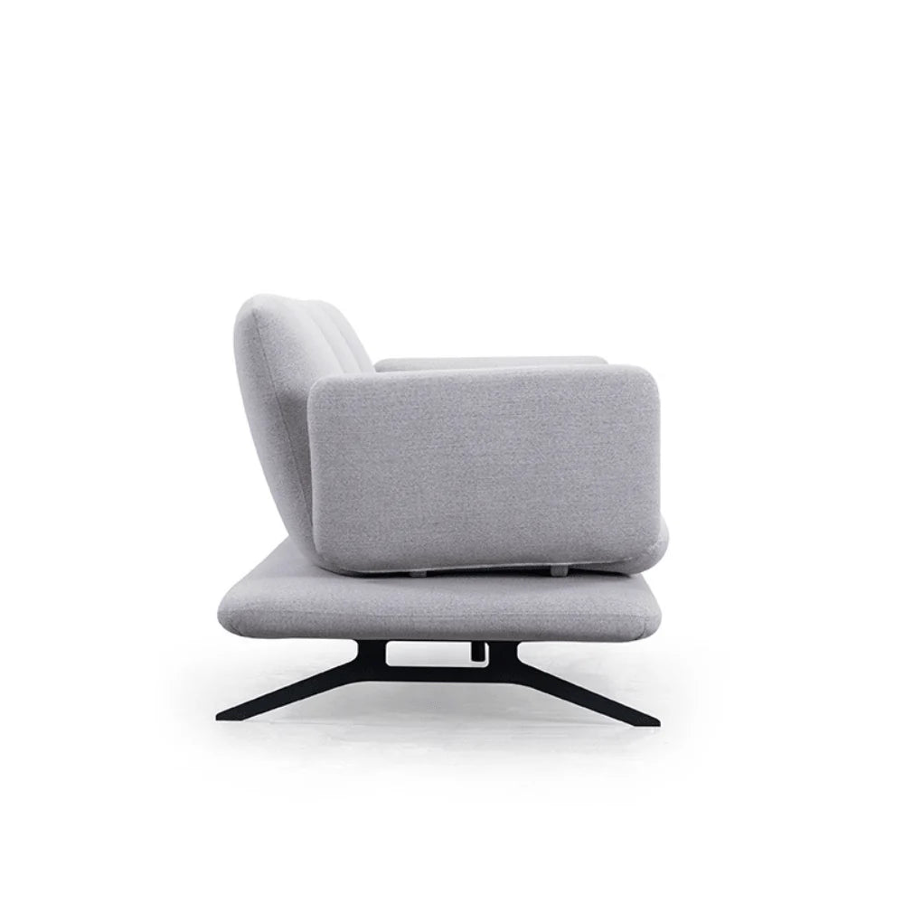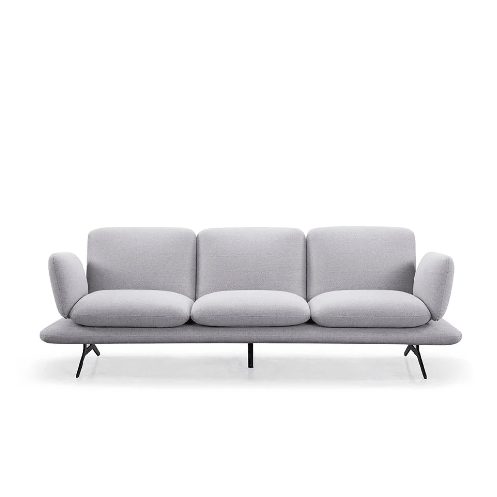 Designed for modern workspaces, this three-seater fabric sofa, with a width of 220cm, offers ample seating space perfect for team breaks or meetings. Its double-layered, highly elastic, cloud-like cushions provide exceptional comfort and support, while its manganese steel spring support system ensures stability and durability for extended use. The unique, three-dimensional, cloud-shaped backrest enhances comfort and provides excellent back support, while the modern, minimalist metal legs add a stylish look, perfectly suited to any office style.