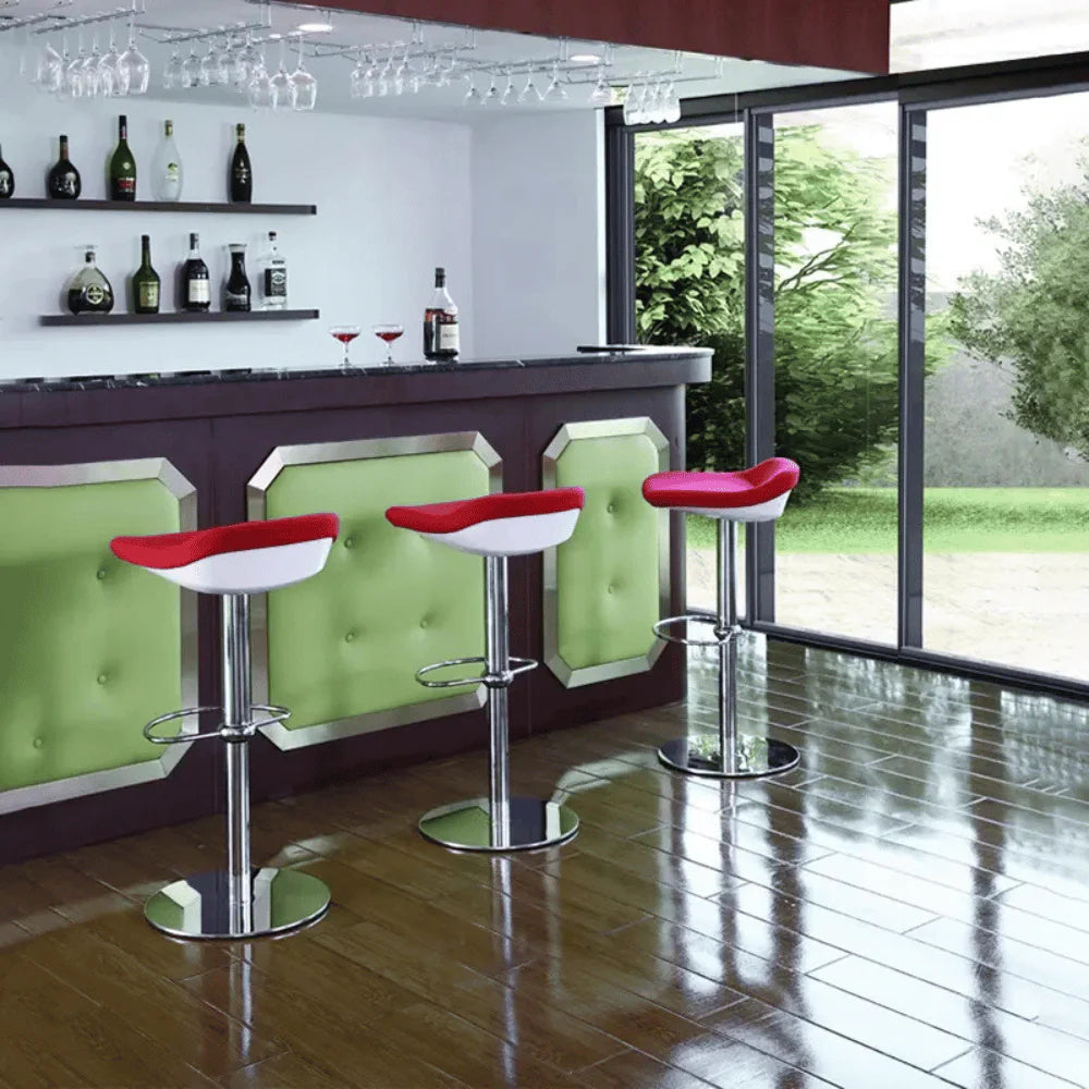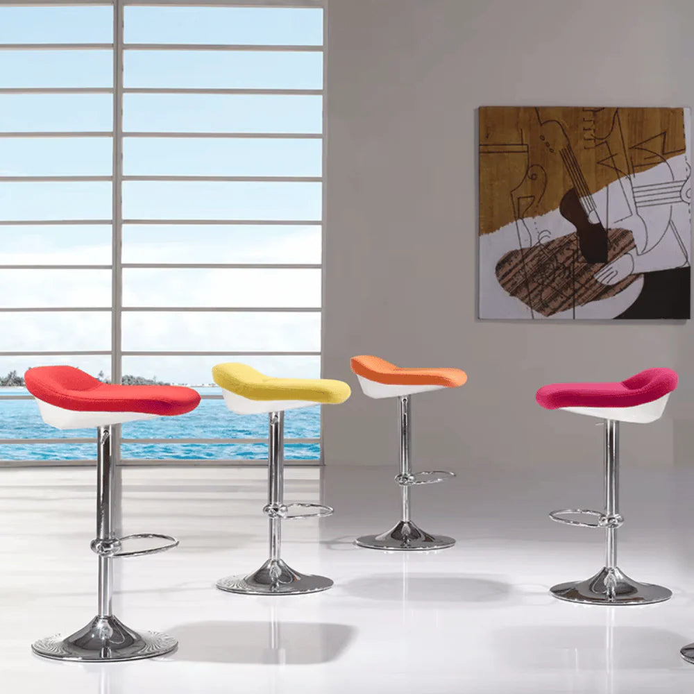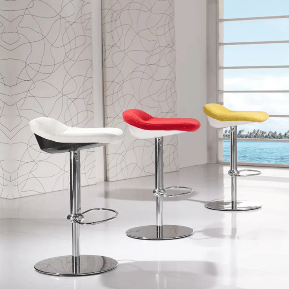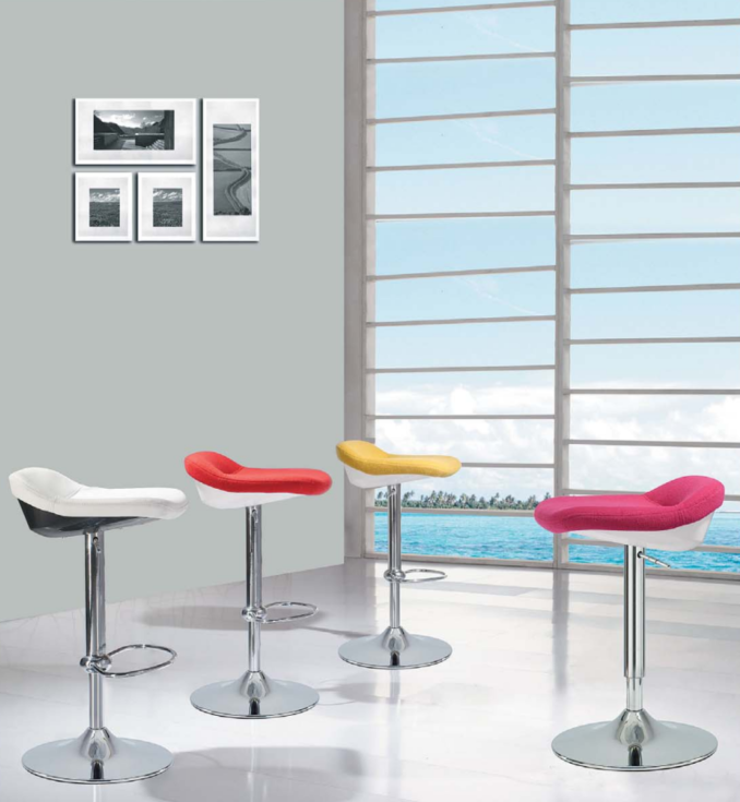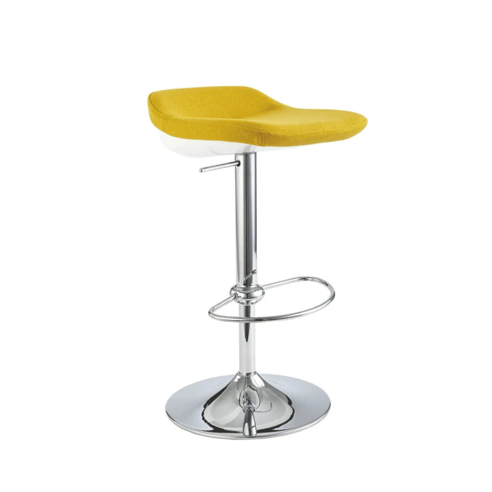 BS027-OU低背可調高旋轉酒吧吧椅採用金屬結構椅架,穩固耐用。座墊使用密度50kg/m³聚氨酯高密度成型泡棉,久坐不變形,表面可選布藝或PU皮革包覆,高回彈且抗起球不褪色。可調高度金屬圓盤旋轉底座附腳踏環,提供靈活舒適的吧台使用體驗。