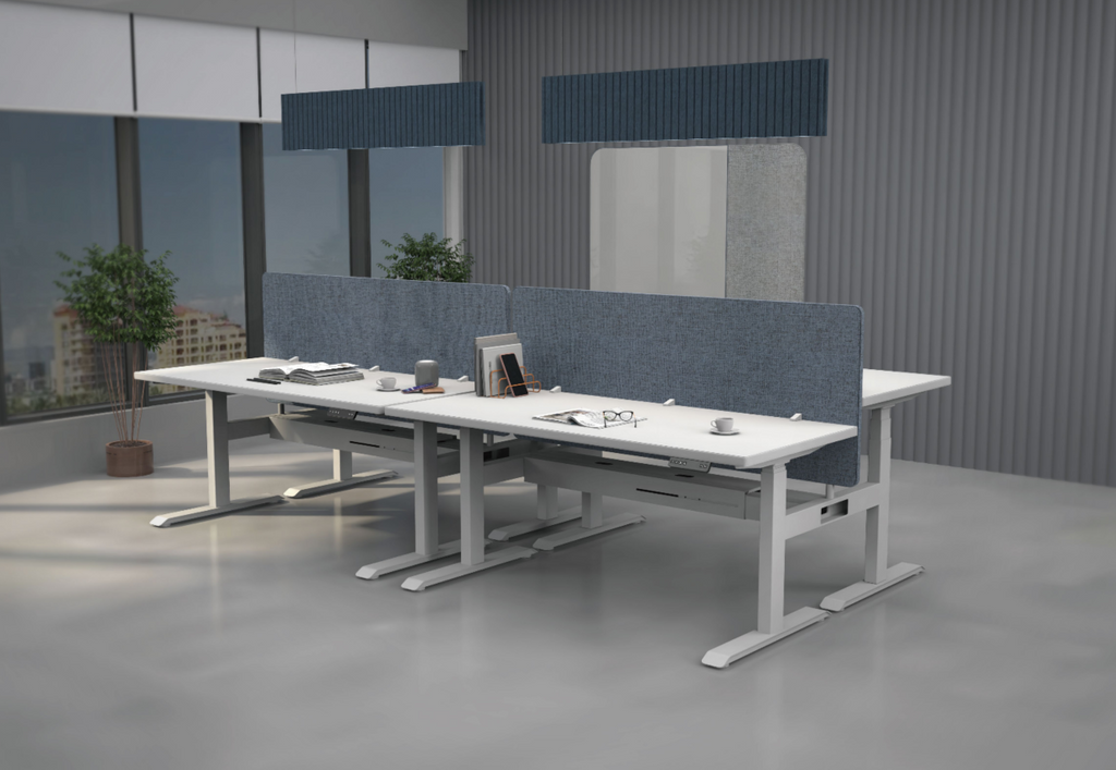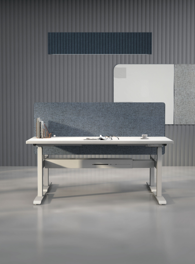 EFP-32桌面屏風以PET為基材,表面包覆聚酯纖維面料並採用封邊工藝處理,提供9+9mm或12+12mm雙層加厚結構。R30mm圓角安全設計,多種寬度規格可靈活配置,兼具耐用性、吸音效果與精緻細節。