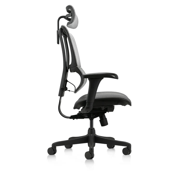 Posto人體工學網椅採用美國Matrex Quantum 3.0網布,搭載創新6D靈活腰部支撐系統,可進行多向調節與張力控制。3D頭枕具備90mm高度與35°角度調節,單桿機構整合座椅高度、深度與傾仰控制。分區支撐設計透過10個獨立區域精準分散壓力,100mm四級氣壓棒與340mm尼龍底座確保穩定操作,完美適應長時間使用需求。