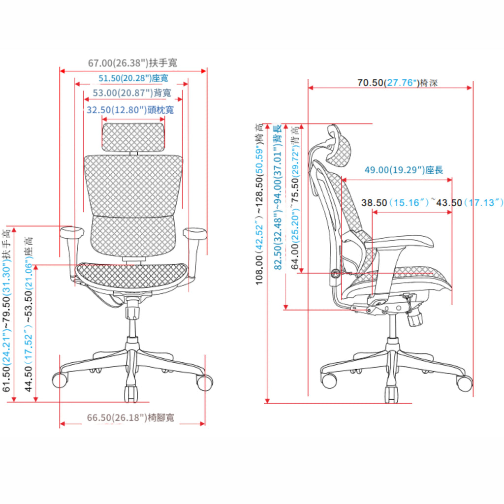 座椅使用高性能彈性網布,結合人體工學的瀑布形設計,有效分散壓力,提供優異的支撐與舒適感,讓您長時間坐姿也能保持輕鬆無負擔。