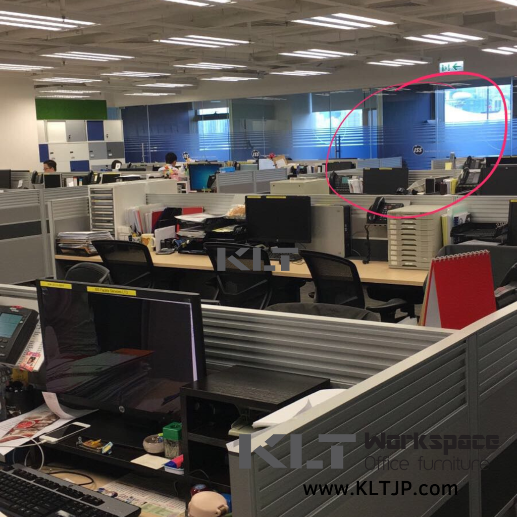 產品: 附半玻璃高屏風辦公桌、轉盤手攪推櫃