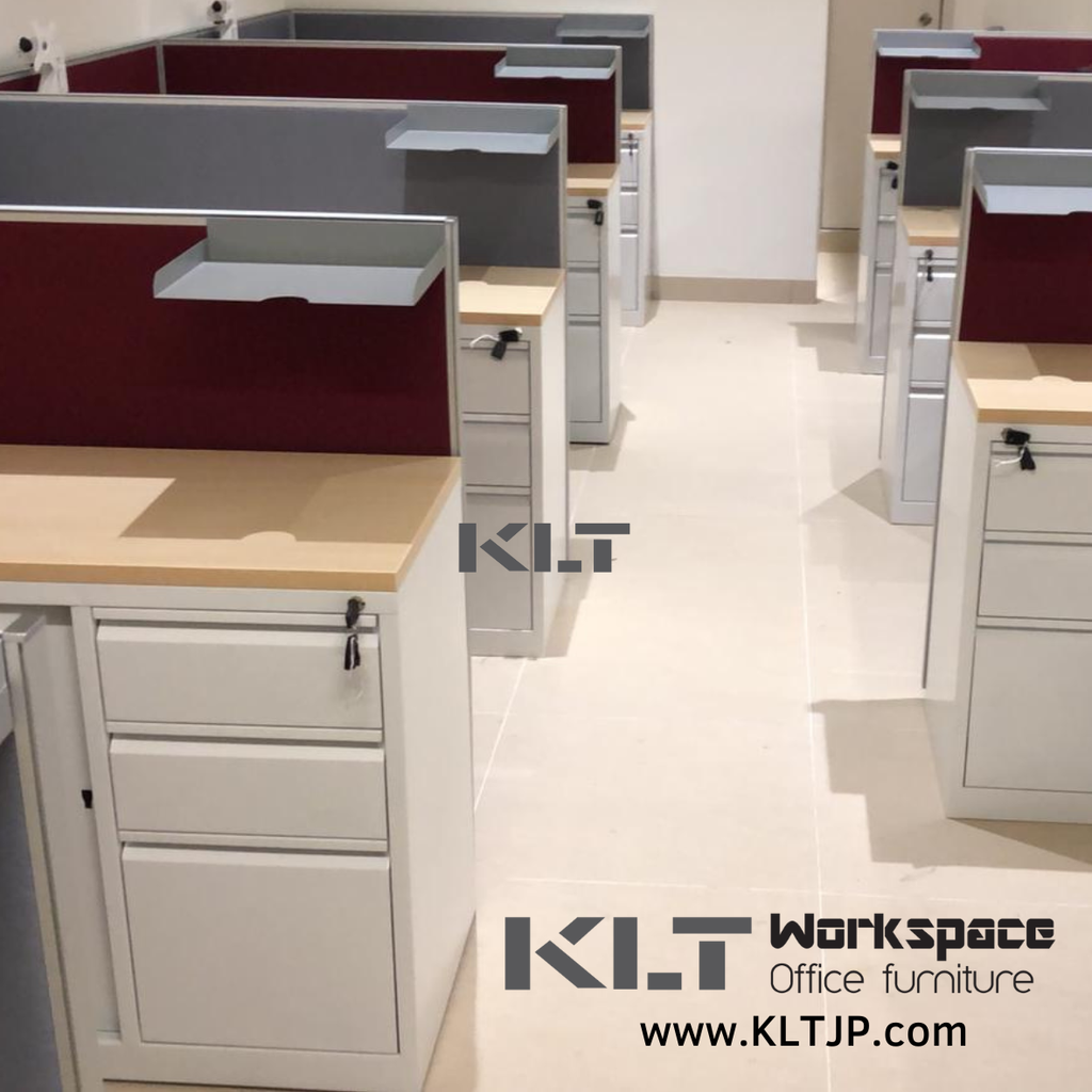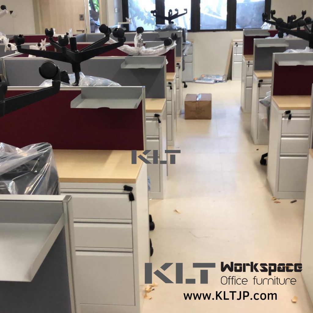 Products: Round Table, Steel File Cabinet, Office Chair, EO Eco Board, Tall Floor Partition, L-Shaped Office Desk
