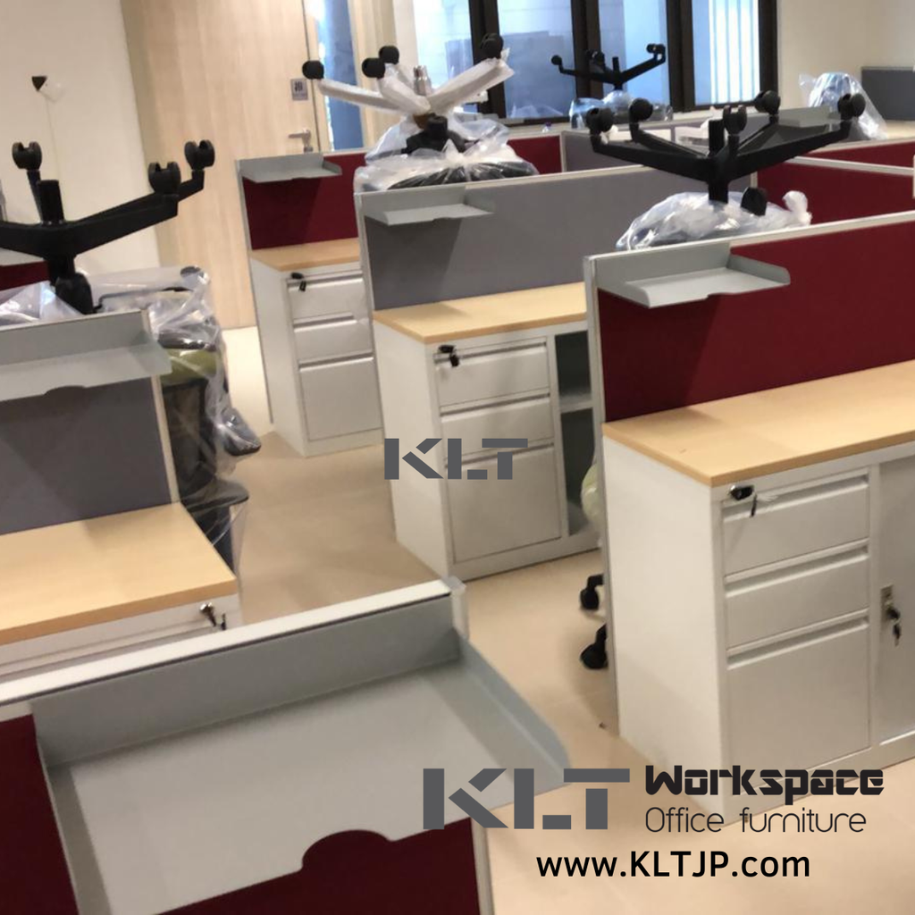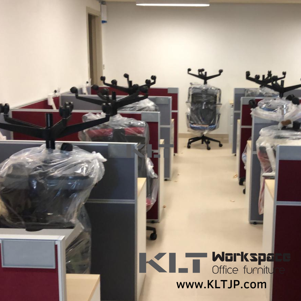 A contemporary and sustainable office setup designed for functionality and comfort. The project includes L-shaped office desks made with EO eco-friendly boards, ensuring both safety and environmental protection. Tall floor partitions provide privacy and organization, while round tables and ergonomic office chairs create a welcoming and collaborative workspace. Durable steel file cabinets offer ample storage solutions, completing a professional and efficient office environment.