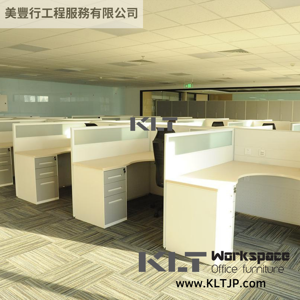 產品: L形辦公桌、多功能辦公椅、鋼製儲物櫃、半玻璃高屏風