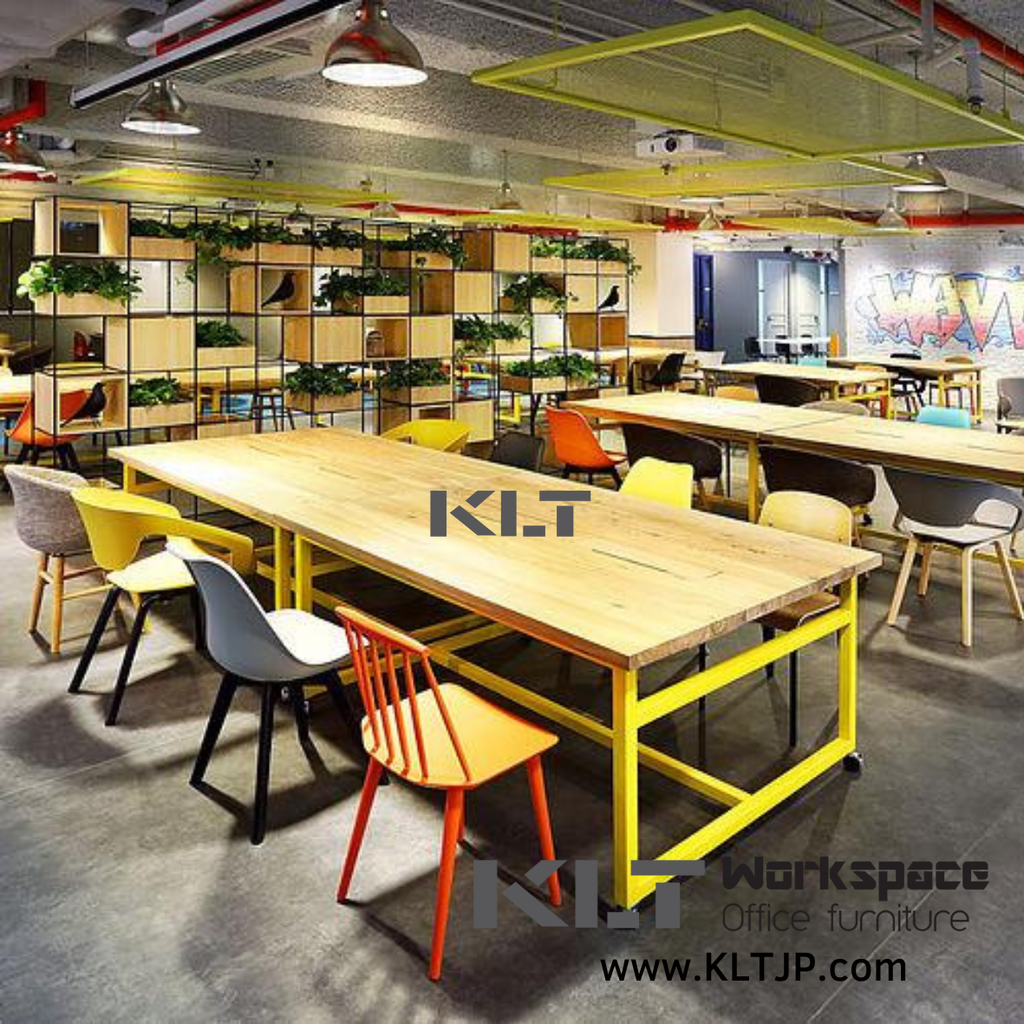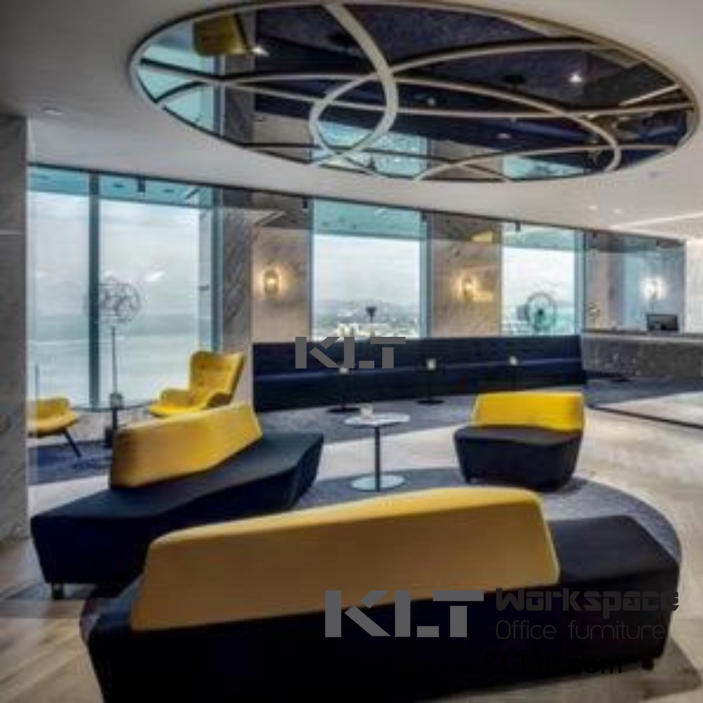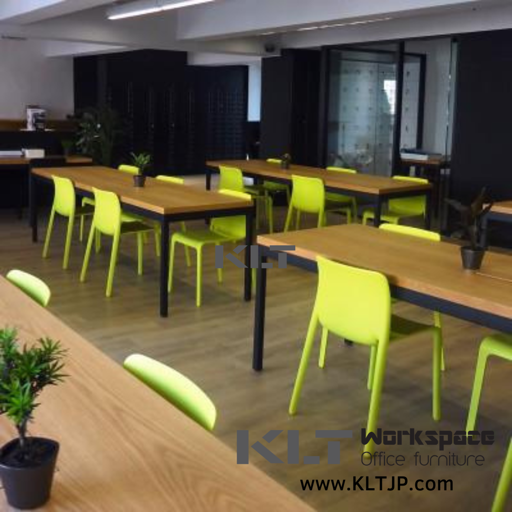 A modern and dynamic office design that balances productivity with comfort and creativity. The project features a multi-functional conference table ideal for team discussions and presentations, complemented by a rectangular coffee table and stylish fabric sofas that create a relaxed, collaborative atmosphere. Plastic and metal stacking chairs provide flexibility for group meetings or events, while bean bag sofas and fabric lounge chairs add a casual touch, encouraging innovation and comfort within the workspace. The overall setup reflects a contemporary and human-centered office culture.