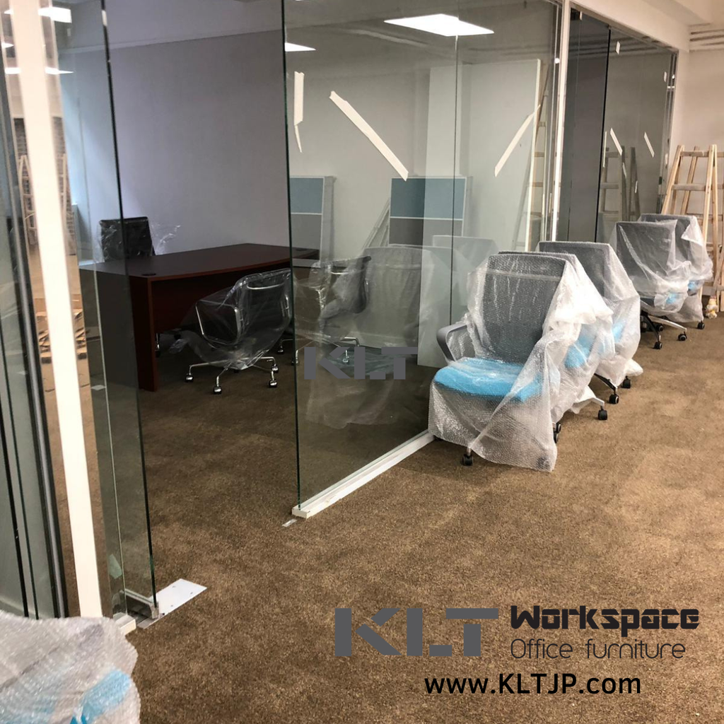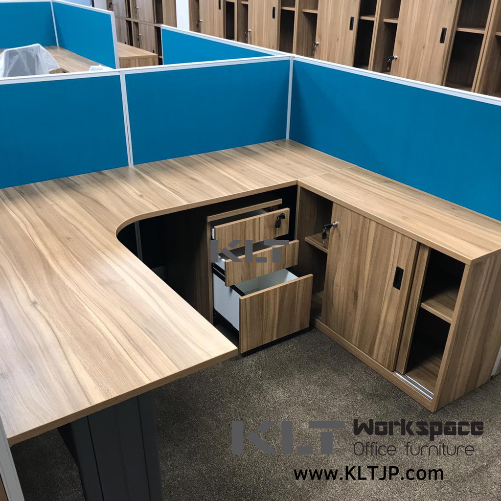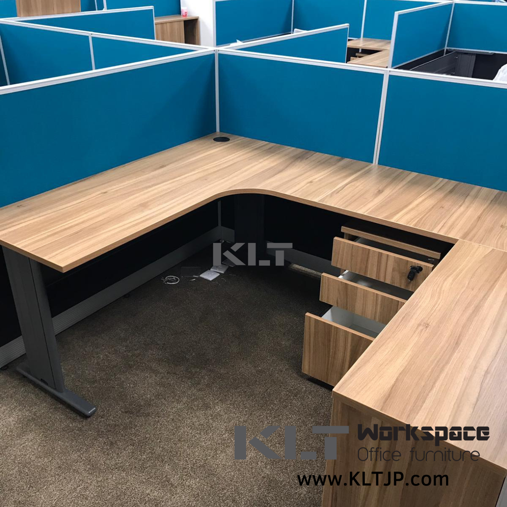 Products: L-shaped Office Desk with Cable Management, Under-desk File Cabinet, Wooden Double-door File Cabinet, Acoustic High Partition, Office Chair, Executive Desk, Visitor Chair, EO Eco Board
