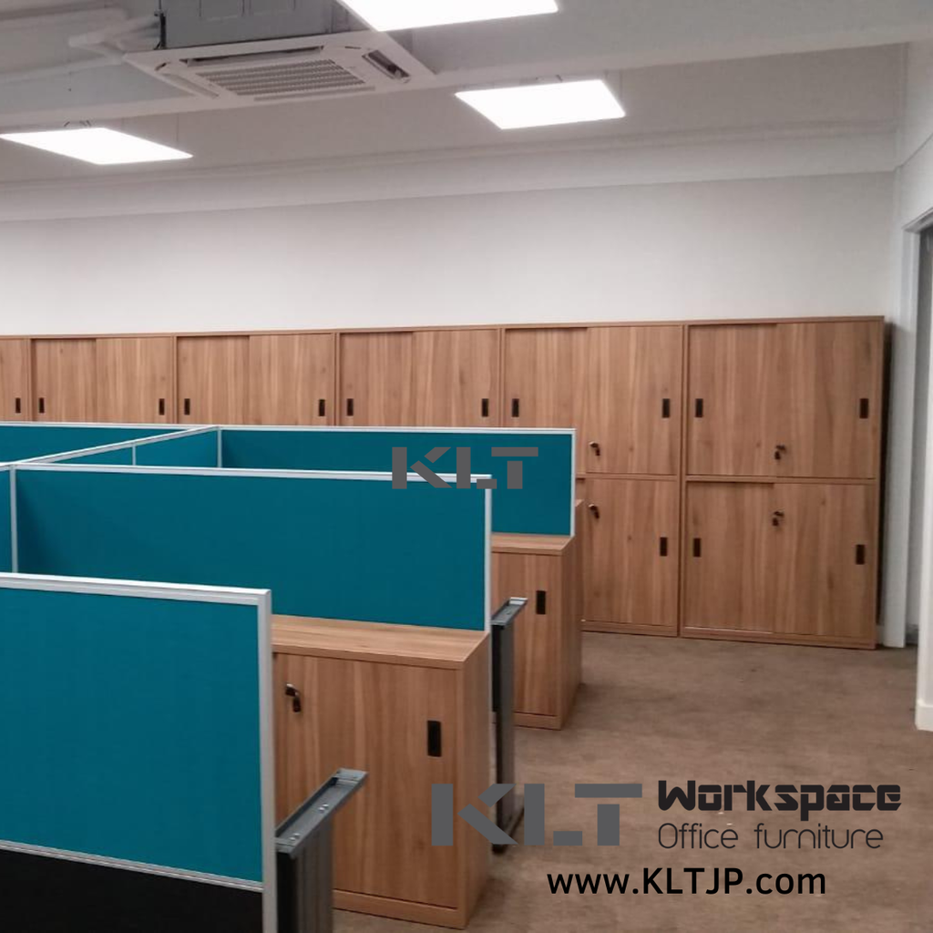A professional and eco-friendly office setup designed to create an organized, comfortable, and modern work environment. The project features L-shaped office desks and executive desks with integrated cable management systems, promoting efficiency and a clutter-free workspace. Acoustic high partitions provide privacy and noise reduction, while ergonomic office chairs and visitor chairs ensure comfort for both staff and guests. Wooden double-door and under-desk file cabinets offer reliable storage, all crafted with EO Eco Boards to ensure environmental safety and sustainability. The overall layout enhances productivity while reflecting a caring and professional image.