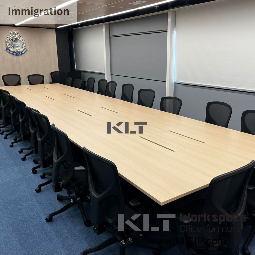 A professional and efficient conference room setup designed to support administrative meetings and operational coordination. The project features a modern conference table equipped with an integrated cable management system, ensuring a clean and organized workspace ideal for multimedia presentations and high-level discussions. The design emphasizes functionality, durability, and simplicity, creating a formal yet comfortable meeting environment that aligns with the professionalism and efficiency of the Immigration Department.