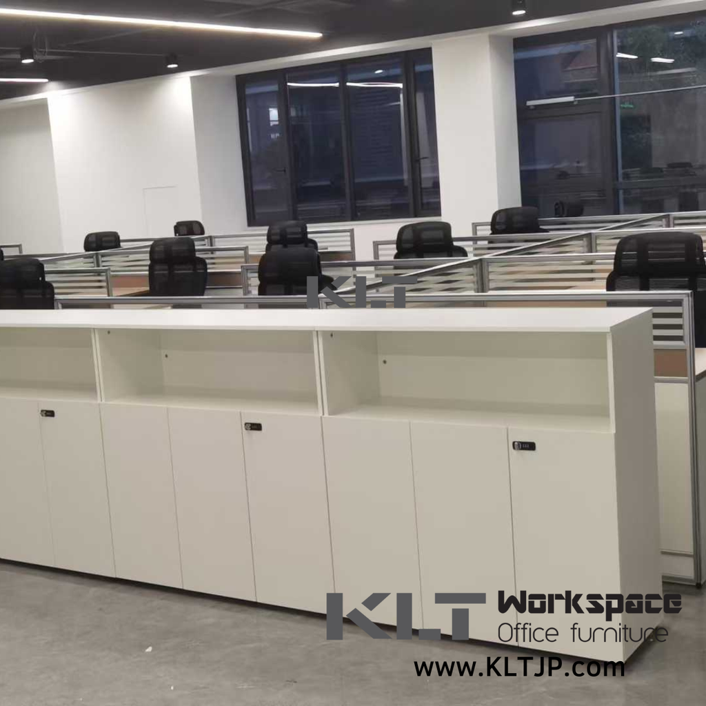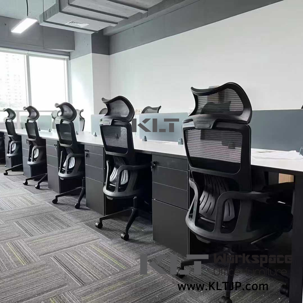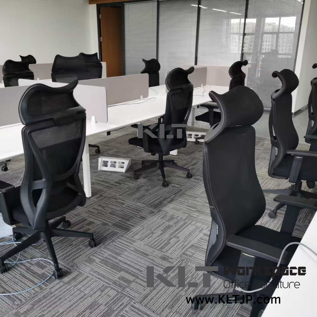 產品: 具電線管理功能長方形摺疊桌、多人工職員台、玻璃屏風、高背職員椅