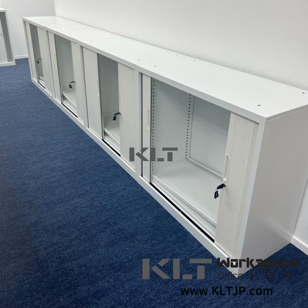 產品: L型職員台、玻璃屏風、可移動三桶櫃、雙門鐵捲門櫃