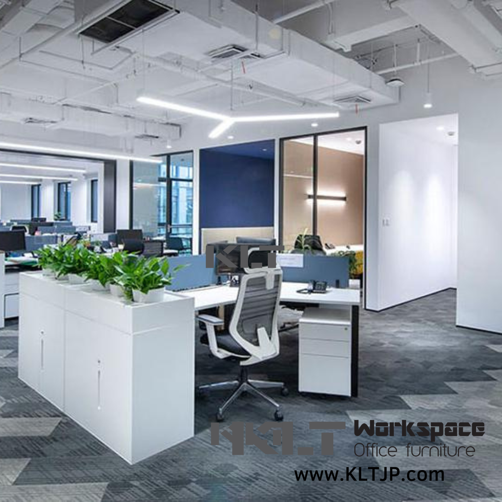 A sophisticated and functional office environment designed to enhance productivity and comfort within a premium commercial tower. The rectangular conference table serves as the focal point for meetings, combining modern aesthetics with practicality. Dual staff desks and modern partitions create an organized workspace that promotes both collaboration and focus. Wooden three-tier mobile cabinets provide flexible storage, while armchairs and high-back staff chairs ensure ergonomic comfort. Desktop dividers add privacy and structure to open office layouts, completing a well-balanced and professional setting.