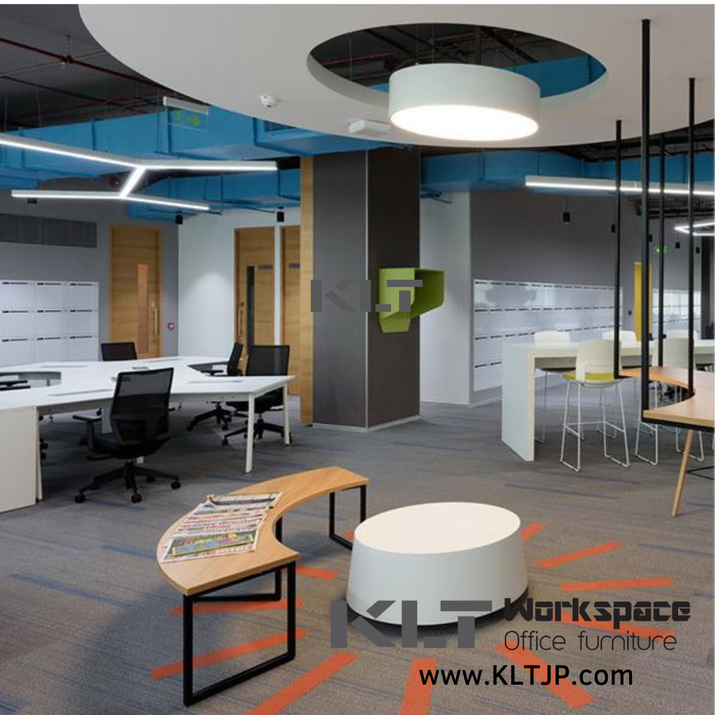 A creative and open office environment designed to support architectural collaboration and innovation. The project features open-plan staff desks and tall workspace tables that encourage communication and teamwork among designers. Task chairs and low-back staff chairs ensure ergonomic comfort during extended work sessions, while bar stools and coffee tables create casual discussion zones. The U-shaped coffee table and wooden cabinets add a warm, natural touch to the space, enhancing both functionality and aesthetics. The overall layout reflects the firm’s design philosophy — a perfect harmony between creativity, practicality, and modern simplicity.