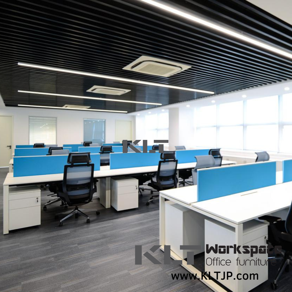 產品: 具電線管理功能長型多人職員台、人體工學椅、網布椅、可移動三桶櫃、桌上布藝屏風、高身玻璃屏風