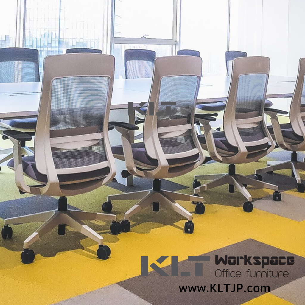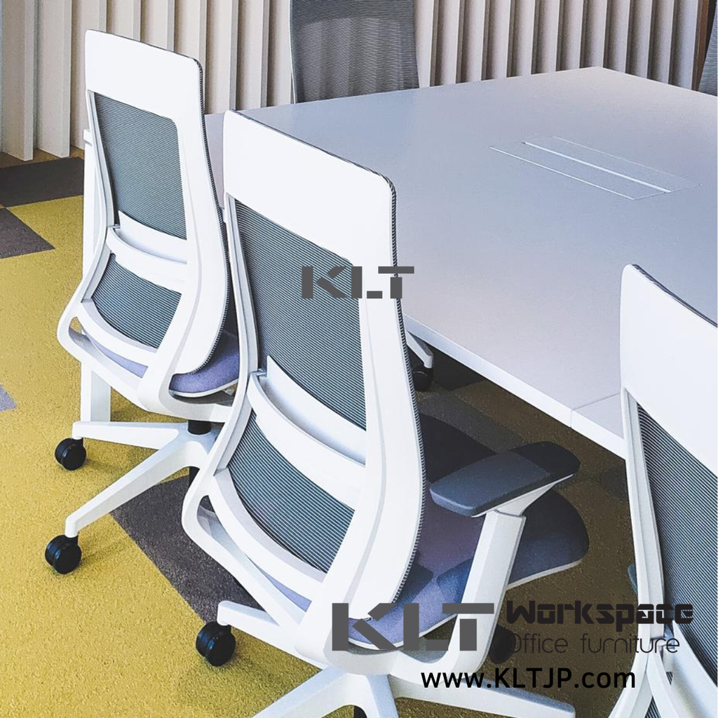 產品: 具電線管理功能長型多人職員台、人體工學椅、網布椅、具電線管理功能多功能會議桌