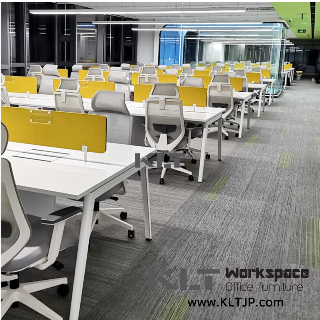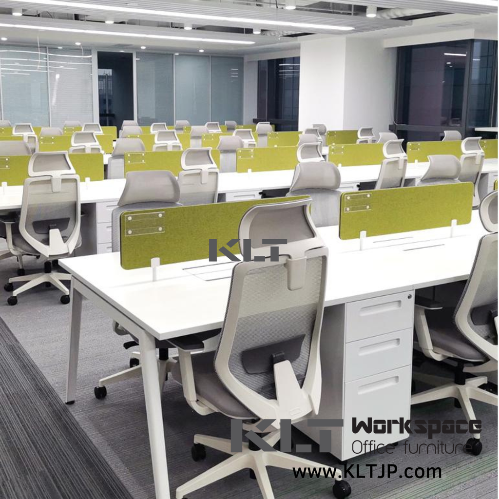 產品: 具電線管理功能長型多人職員台、人體工學椅、網布椅、可鎖鐵製職員櫃、桌上布藝屏風