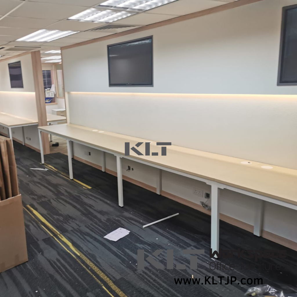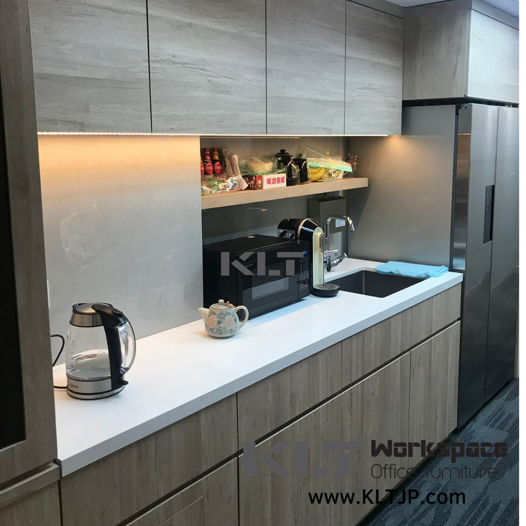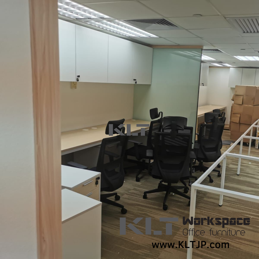 整體設計高雅實用,為金融機構打造兼具專業與舒適的辦公環境。長型職員台促進團隊協作與空間規劃;可移動三桶櫃靈活收納,提升工作效率;高身木製廚櫃與吊櫃提供完善儲物功能,並以木質紋理增添溫暖氛圍。整體風格簡潔現代,體現大新金融中心專業穩重的企業形象。