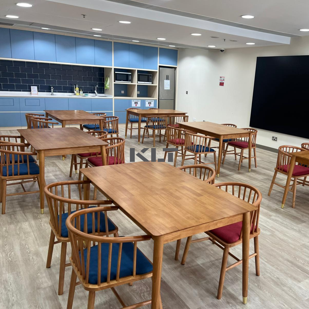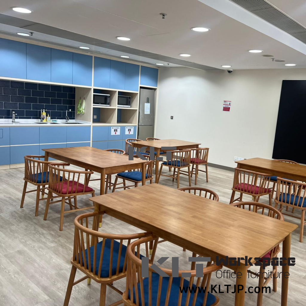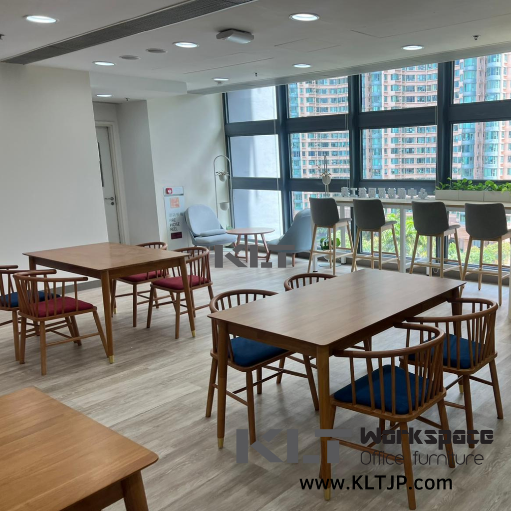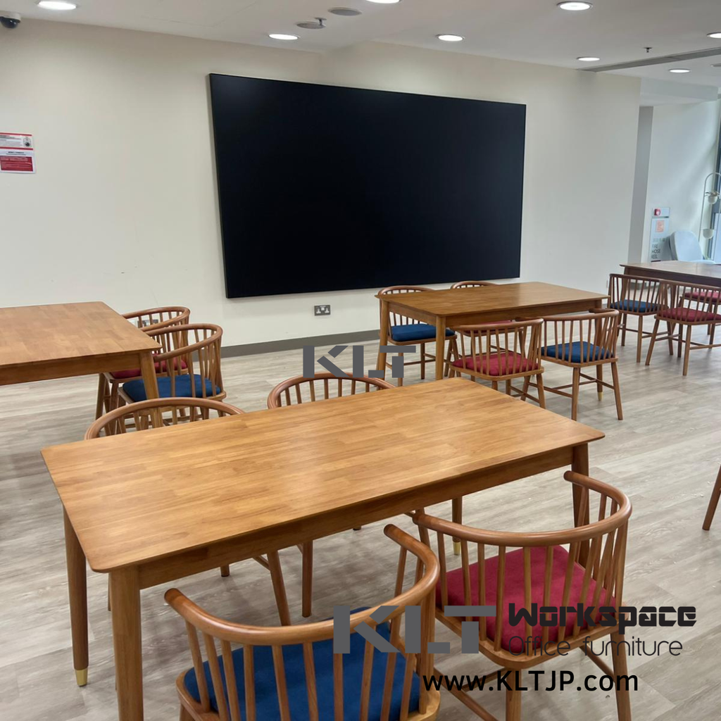 整體設計溫馨雅緻,為員工與義工提供舒適放鬆的用餐與休憩環境。木紋餐桌質感自然,營造溫暖氛圍;單人扶手休閒椅符合人體工學設計,提供穩定與舒適的坐感。整體空間簡潔柔和,兼顧實用與美觀,體現香港紅十字會關懷與人本精神,打造溫暖有愛的公共空間。