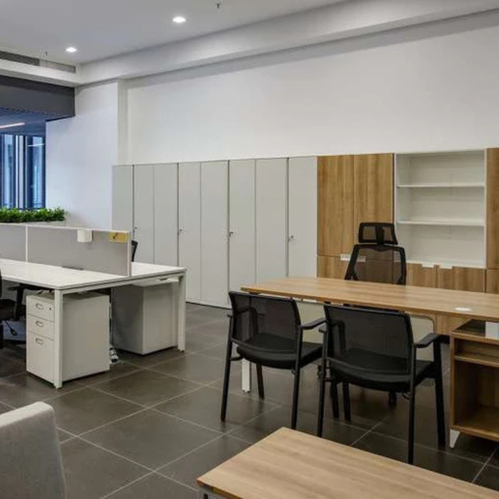 This project delivers a modern, efficient, and aesthetically balanced office layout within Silvercord Tower 2. The rectangular multi-user workstation with integrated cable management supports organized teamwork and smooth daily operations. L-shaped workstations and L-shaped manager desks offer spacious, ergonomic work environments for both staff and management. Mesh and ergonomic staff chairs ensure comfort and support during long working hours. The decorative planter cabinet adds greenery and softens the workspace atmosphere, creating a healthier and more welcoming environment. Mobile storage units and tall wooden filing cabinets provide flexible and structured storage solutions. Visitor chairs complete the meeting and reception zones, forming a coherent, functional, and stylish office setup.