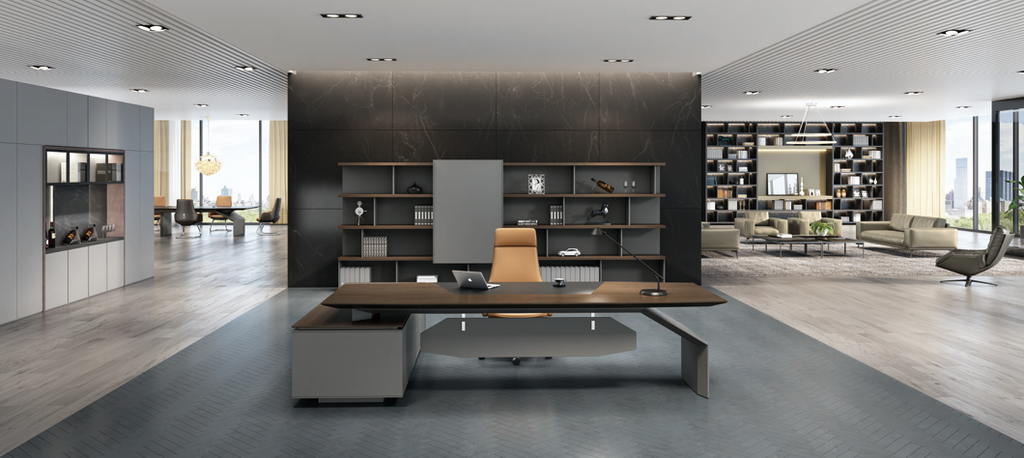 辦公室經理大班桌連儲物櫃由Kano首席設計顧問Bellini先生特別設計,以精湛輪廓與細緻工藝完美體現美感與力量的融合。Lorenzo系列蘊含意大利語「勝利」之意,旨在為高階管理者提供既高端優雅又含蓄內斂的工作空間。這款大班桌透過卓越的設計語彙與精緻細節,展現出獨特的品味與專業氣度,完美契合現代經理人對辦公環境品質與美學的雙重追求。