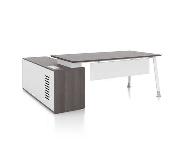 行政辦公桌連儲物側櫃將獨特的高端卡其色與優雅白色完美融合,搭配鋼製腳座,為現代辦公環境呈現簡潔而不失品味的辦公桌選擇。Noqi系列透過精緻的配色與穩固的結構設計,展現出低調奢華的質感,既能滿足日常辦公的實用需求,又能為工作空間注入時尚氣息,特別適合追求品質與美學兼具的行政辦公環境。