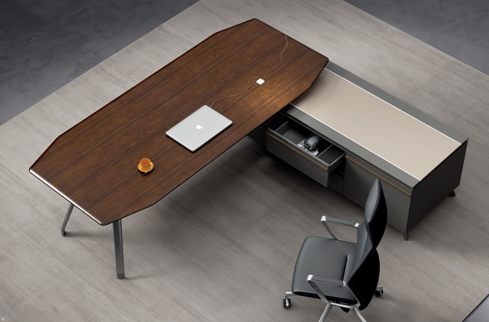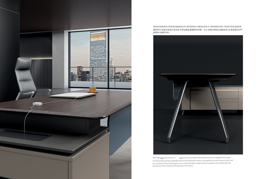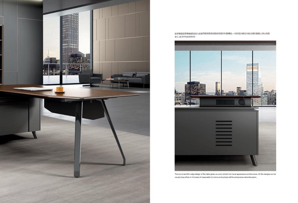 時尚木質行政辦公桌連儲物側櫃專為舒適辦公與客戶洽談而設計,從芭蕾藝術中汲取靈感,以一對優美弧形與纖薄桌面展現輕盈姿態。不僅是工作的空間,更是從容對話的場所,協助高階主管以更年輕活力的姿態迎接各種挑戰。這款辦公桌將藝術美感與實用功能完美結合,為現代行政空間注入優雅與靈動的氣息,重新定義高端辦公家具的設計標準。