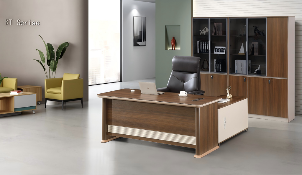KA28 胡桃木大班桌連儲物側櫃