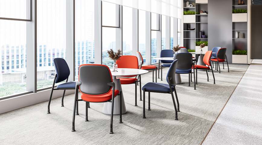座椅可进行向上堆叠5张,有效减少空间面积占用,更有利于有限的空间使用或频繁调整布局的场所;便于用户轻松进行座椅搬运和储存,并能根据需求灵活增减空间座椅数量;也可轻松保持空间整洁管理,避免座椅散乱分布,影响美观。