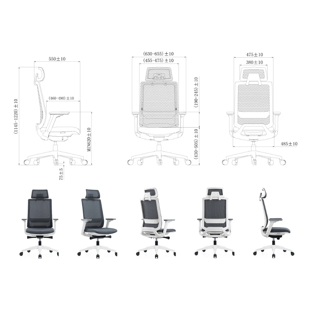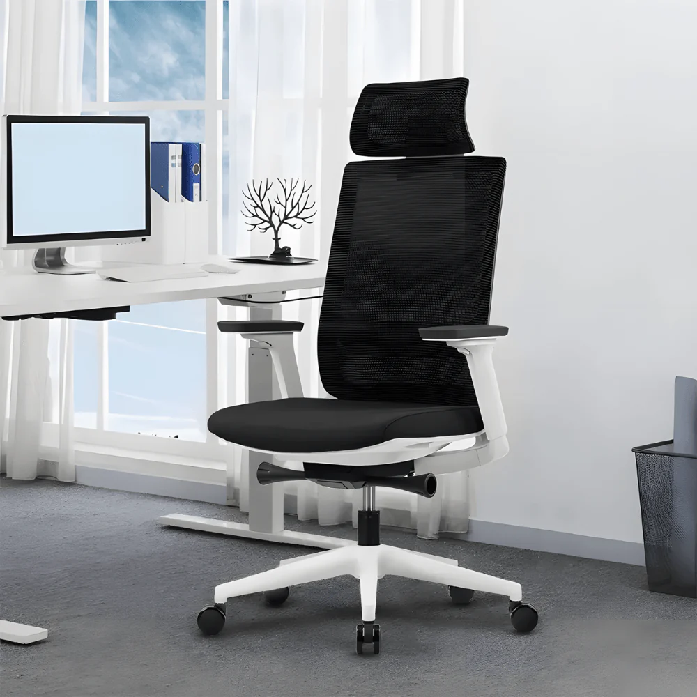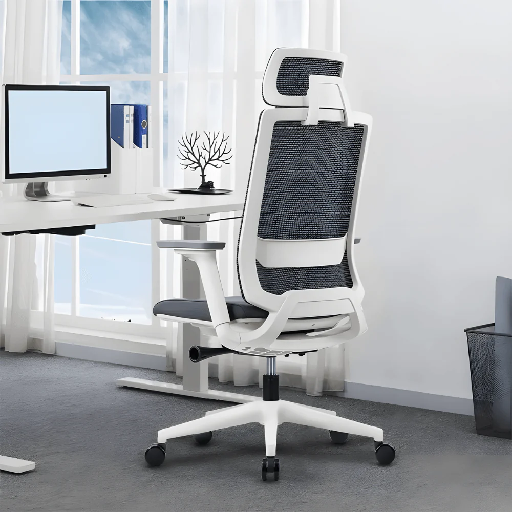 Terc高背電腦椅採用高品質透氣網布設計,頭枕部位特別選用網布材質,確保頭部接觸時的舒適透氣性。4D多功能扶手可多角度調節,為手臂提供自然支撐,幫助維持健康坐姿。4段鎖定傾斜機構可根據個人需求調整座椅深度,配合可調節腰部支撐系統,精準滿足不同使用者的舒適需求,打造完美貼合身體曲線的辦公座椅。