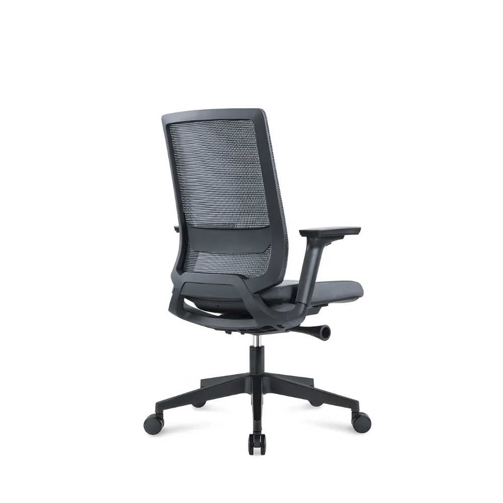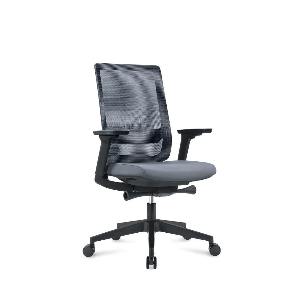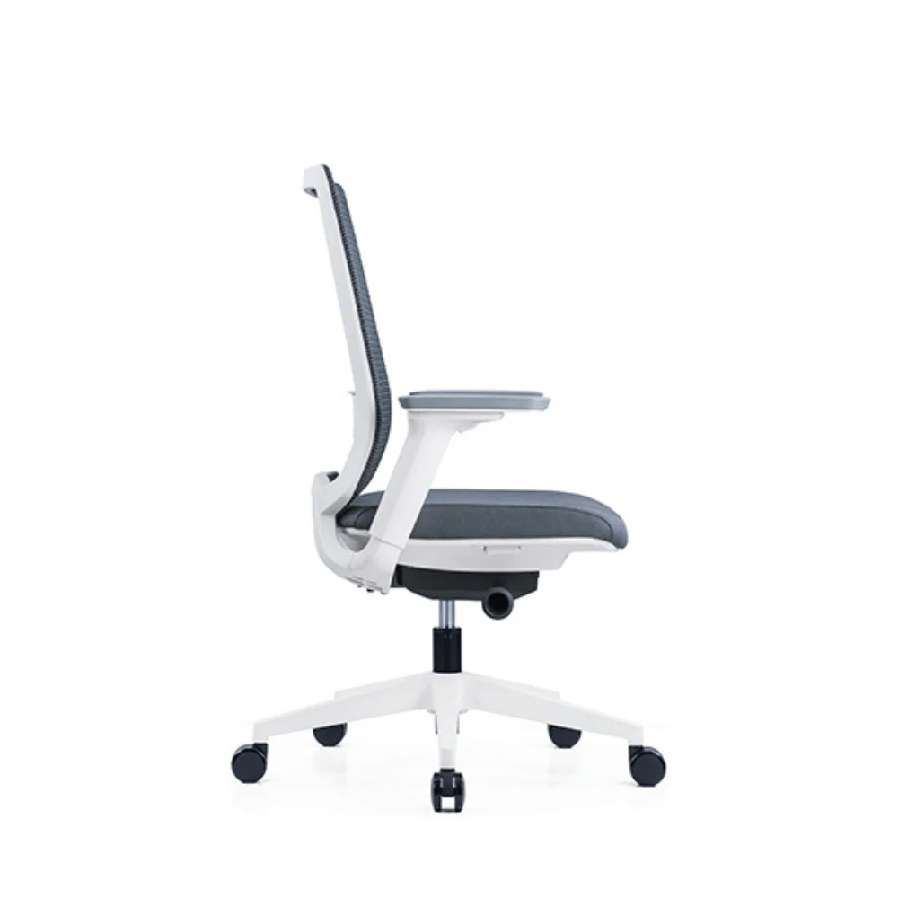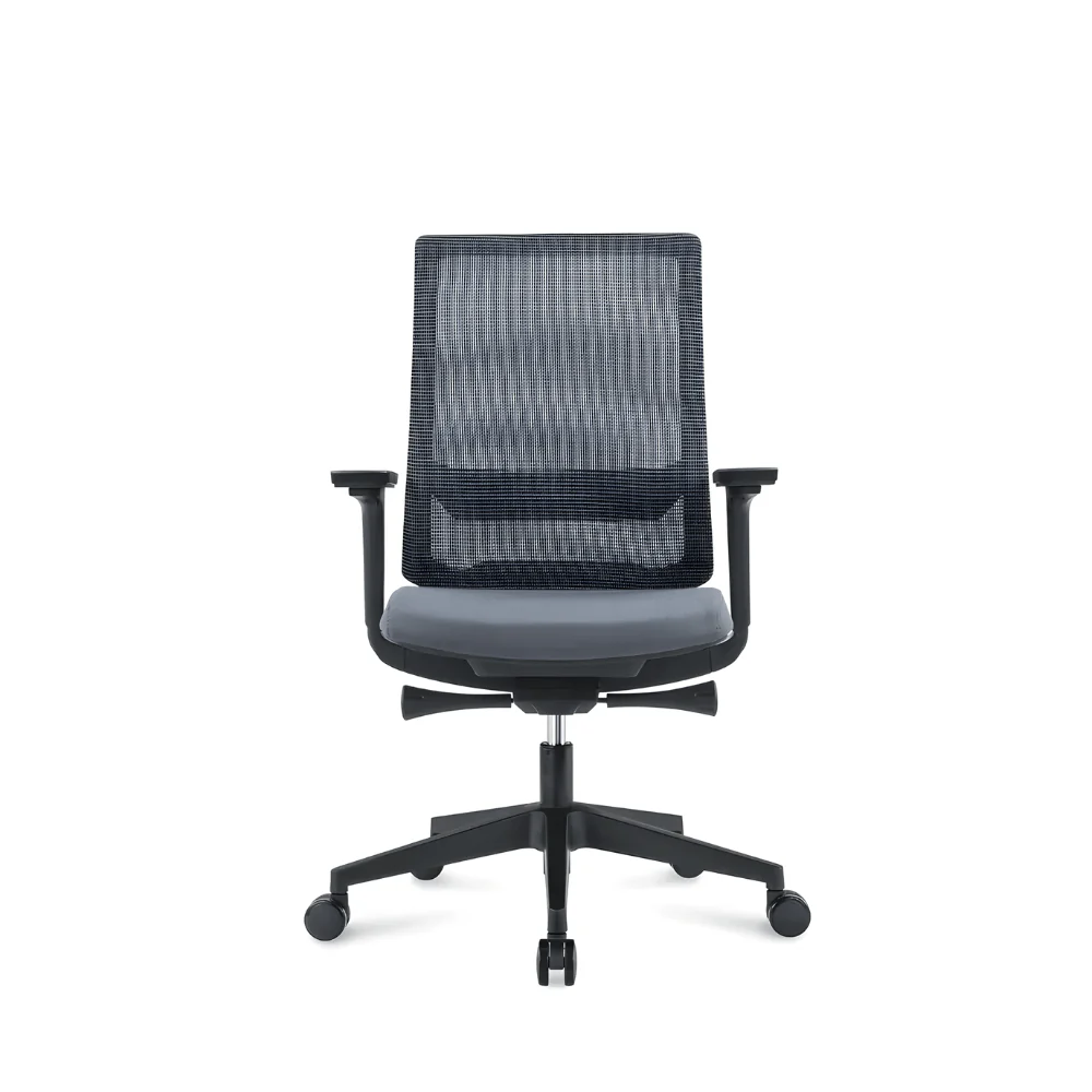 Terc中背電腦椅選用高品質透氣網布材質,頭枕部位採用網布設計,確保頭部接觸時的舒適透氣感。4D多功能扶手可進行多角度調節,為手臂提供自然支撐,有助於維持更健康的坐姿。4段鎖定傾斜機構可依個人身形調整座椅深度,搭配可調節腰部支撐系統,精準滿足不同的舒適需求,為中背設計的辦公環境提供優質支撐。