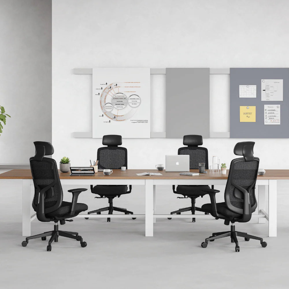 Footer中背電腦椅以英文字母「Y」為設計靈感,採用三點支撐結構與電鍍元素點綴,展現機械美學與動感活力。配備三檔125°同步傾仰機構,可自由調節工作與休閒角度。8cm加厚成型泡棉坐墊搭配弧形設計,完美貼合臀部曲線;6cm可調式網狀腰靠與4cm可調頭枕,為腰部與頸部提供柔軟支撐。整體圓潤風格專為現代簡約辦公環境打造,兼具舒適與美學。