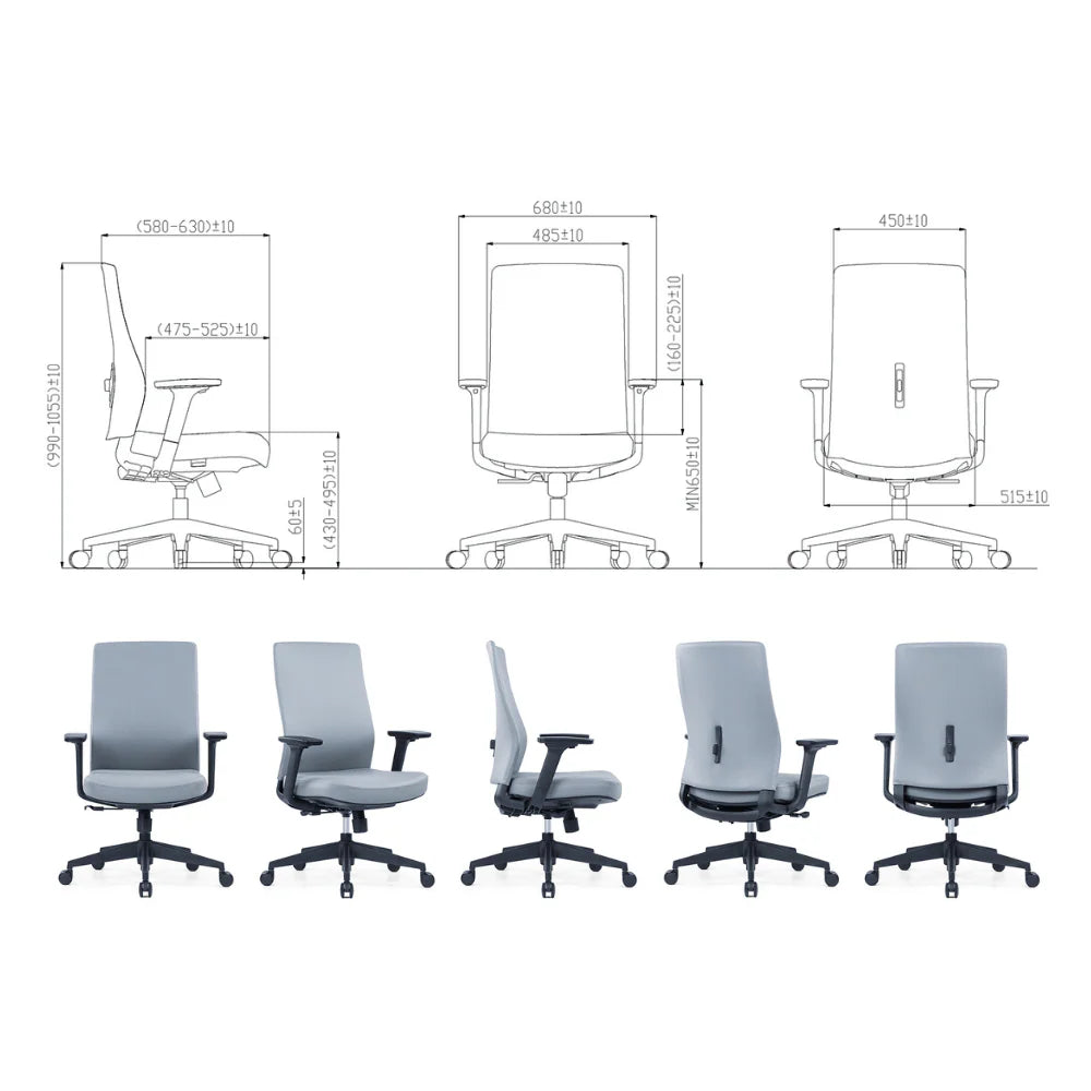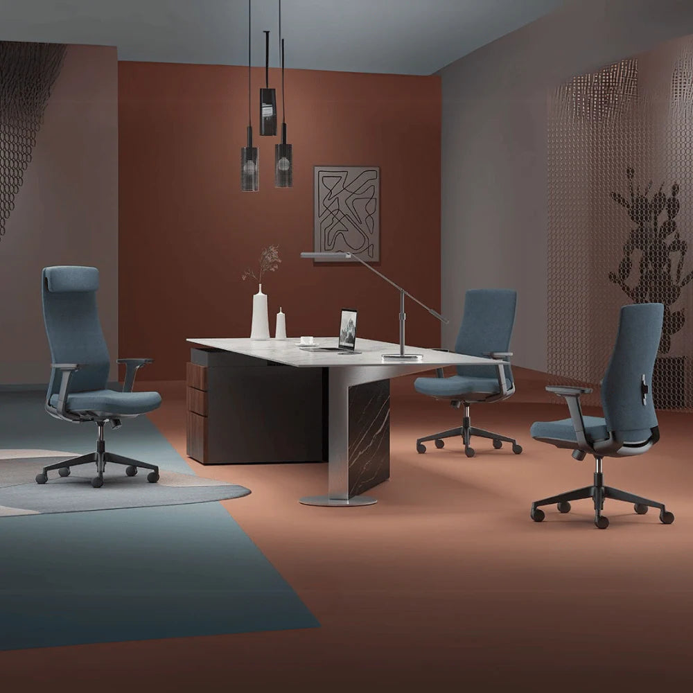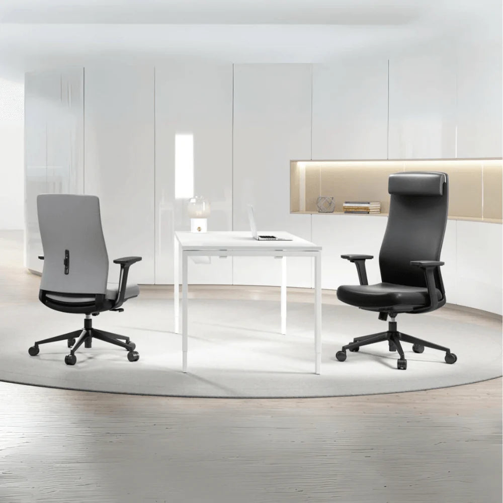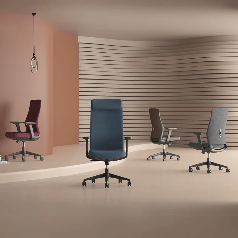 Sedia 大班椅以汽車全包裹座椅套為設計靈感,採用高品質PU皮革或布料頭枕,搭配可調節腰部支撐的PU框架。4D可調節扶手配合3段角度鎖定機構,提供精準的支撐定位。全包裹升降頭枕可上下調節滿足頸部需求,Class-3優質氣壓桿確保穩定升降。創新全包裹設計既保護腰墊結構,又透過系列色彩為辦公空間增添美感,打破傳統網布椅的設計框架。