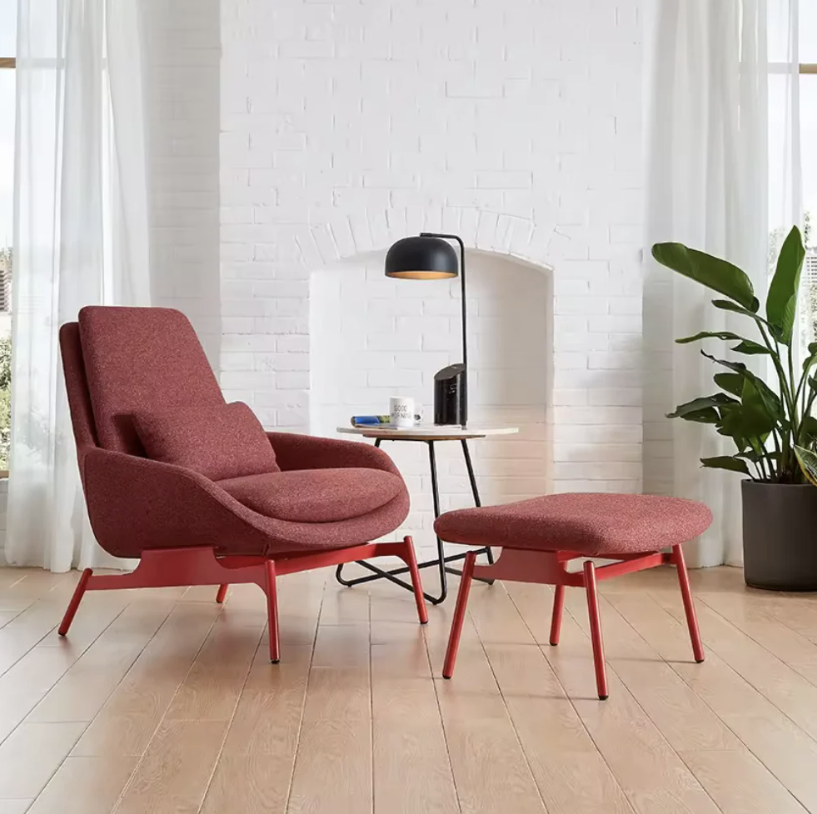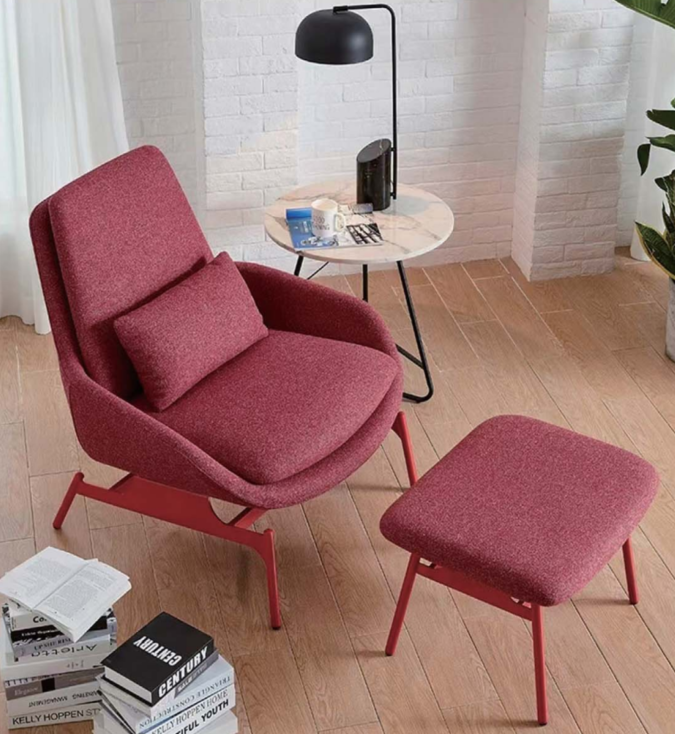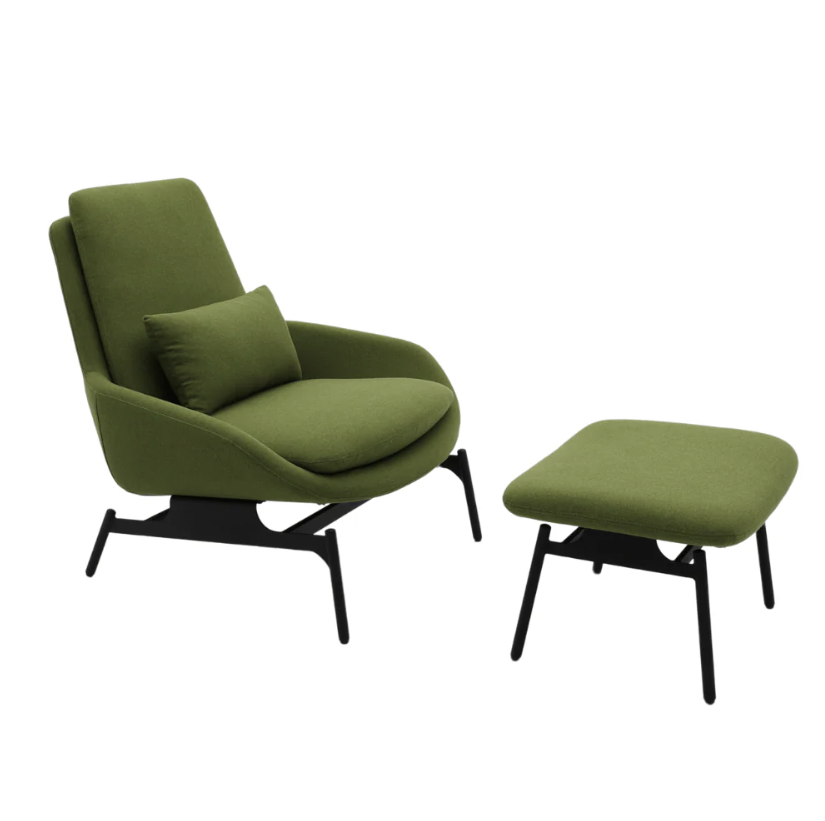 KSY074-OU布藝休閒椅連腳踏提供布料、亞麻或皮革材質可選,以現代辦公室優雅舒適設計為理念。金屬外框無縫焊接確保堅固耐用,PU泡棉一體成型帶來柔軟舒適坐感,搭配噴粉不鏽鋼腳,連腳踏設計全面滿足休憩放鬆需求。