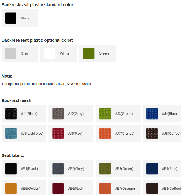背框: 尼龍加纖,(固定)高度,帶(逍遙)功能,布料為杜邦尼龍網布。