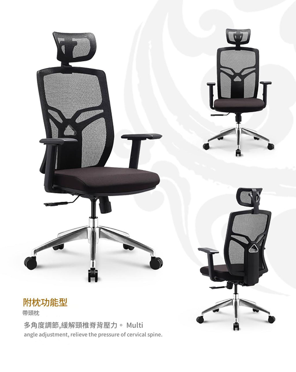 頭枕: 尼龍加纖,(可調)高度和角度,布料為杜邦尼龍網布。