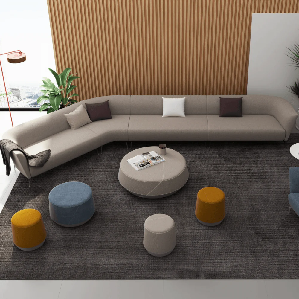Verona梳化採用模組化設計,可選配隔音屏風高背款式,有效區隔辦公空間。紐西蘭進口12mm彎曲松木內框搭配45高密度彈性海綿,提供優質坐感與舒適支撐。流暢優雅線條設計結合鋁合金腳架,可靈活組合滿足等候區、休息區等多元場景需求,展現現代辦公美學。