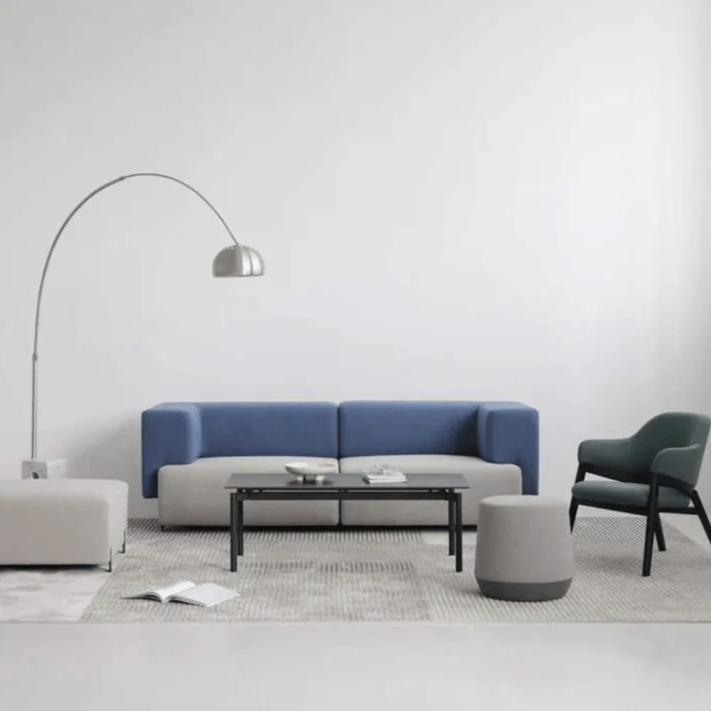 Bari梳化以俄羅斯方塊為設計靈感,採用包浩斯風格呈現幾何極簡造型。懸臂式靠背扶手設計展現輕盈層次感,圓角處理增添柔軟舒適度。實木框架結構搭配高密度海綿填充,提供穩固支撐與舒適坐感。豐富的模組組合與色彩搭配,可靈活適應大堂、談判、休閒等多元空間需求。